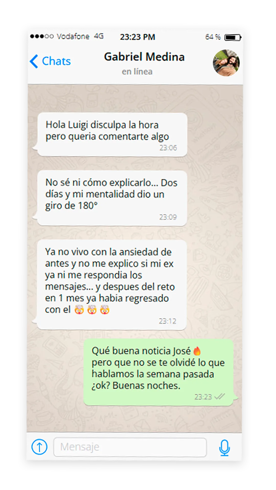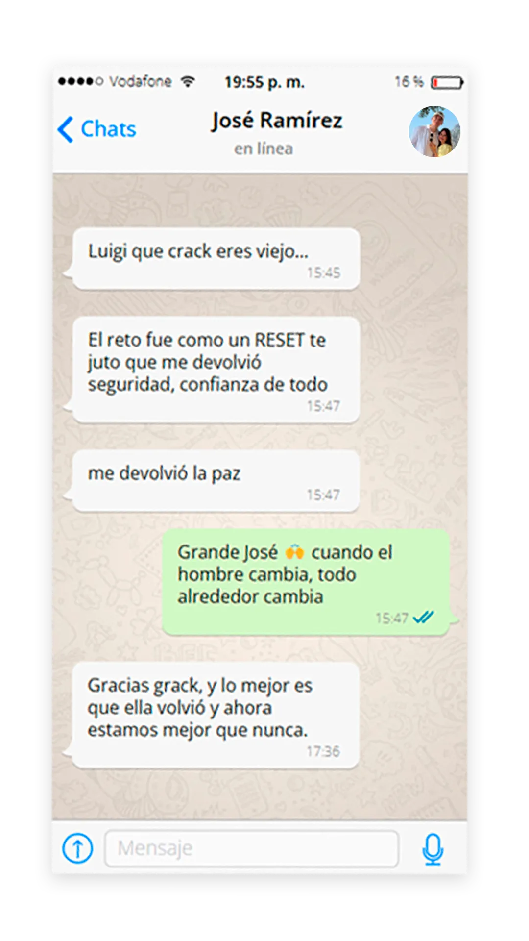 Has llegado al final de esta invitación, y al inicio de un viaje que puede redefinirlo todo. Tengo +10 años acompañando hombres a reconstruir relaciones imposibles, con metodología propia basada en reprogramación, liderazgo y límites sanos. Los cupos son limitados, para preservar la intimidad y profundidad de la experiencia.